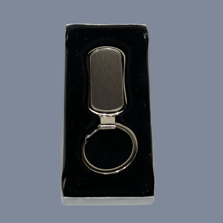 Metal Keychain Rectangular Oval with Black Plate (749) | Custom Engraving in Qatar | Raifa Print