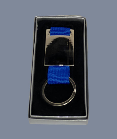 METAL KEYCHAI RECTANGLE SHAPE WITH BLUE STARQ & SPACE FOR EPOXY PRINTING