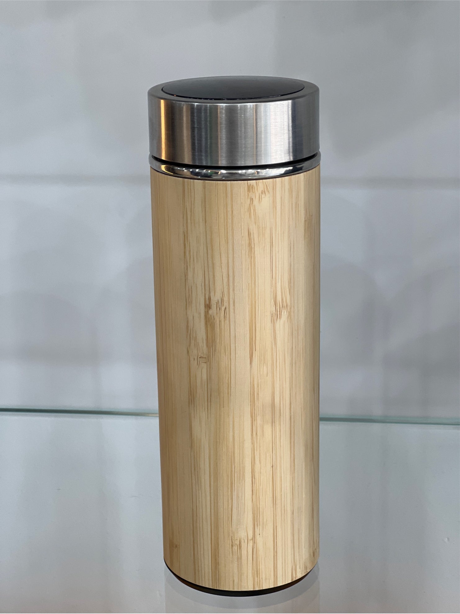 Elegant, smart, and eco-friendly — wooden tumbler with built-in temperature display lid (SD 11594), custom printed by Raifa Print in Doha, Qatar.