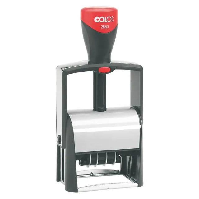 The STAMP 2660 is a robust self-inking date and text stamp featuring a 37 x 58mm print area, perfect for professional office, warehouse, and logistics applications. With integrated date bands and customizable text, this stamp offers clean, consistent impressions designed for frequent use.